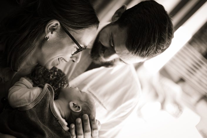Ich komme zu Euch, in Euer Nest, nehme mir Zeit. Kein Blick auf die Uhr, die Kamera noch nicht im Anschlag. Wir lachen zusammen, vielleicht weinen wir auch. So schaffen wir den Raum für Bilder, die Euren gemeinsamen Moment für immer authentisch festhalten. Glaubt mir: ich bin mir der Ehre bewusst, der ich zu Teil werden darf, wenn ich Euch in der ersten Zeit Eures kleinen Menschleins auf der Welt besuche. Das kleine Wesen muss nicht „funktionieren“ und so auch seine Eltern nicht. Wir bekommen das hin – zusammen!